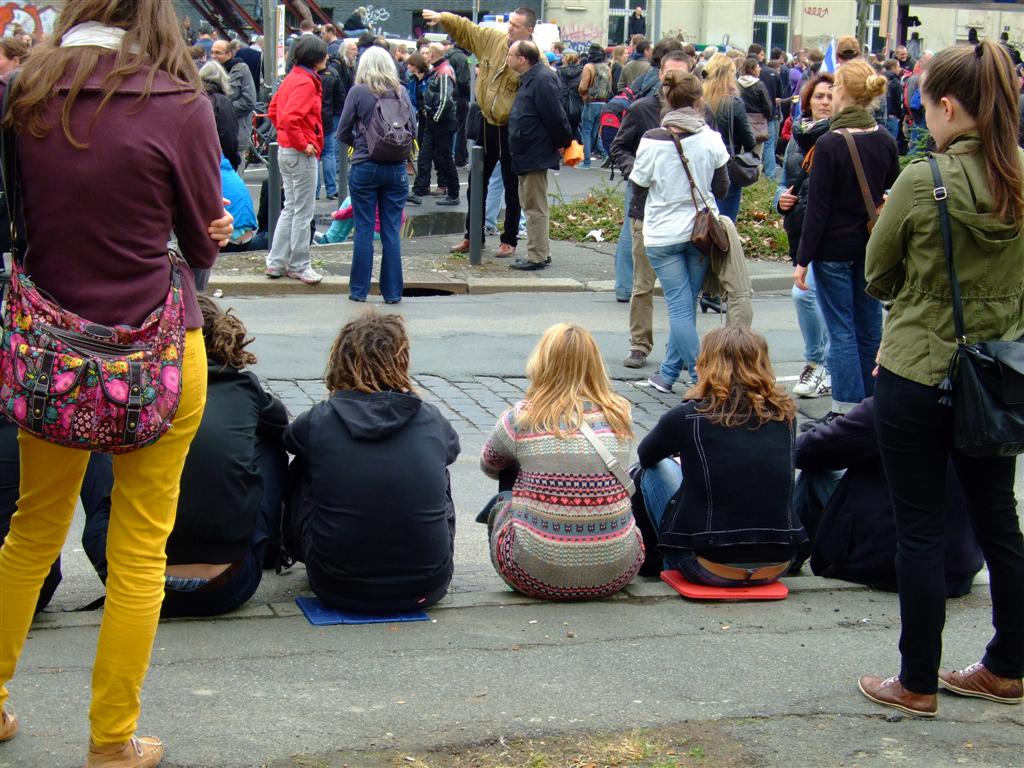 Die Wartezeit – am frühen Nachmittag wurde bekannt, dass der Aufmarsch mit Erfolg verhindert werden konnte – vertrieb sich mancher Wartende mit einer neugierigen Nachfrage über den Zaun, was denn der Sinn dieses Projekts sei. Die überwiegend positiven Reaktionen von Passanten aller Altersstufen geben eine Vorahnung davon, welche verbindende Kraft ein solcher Garten im städtischen Raum entfalten könnte. In diesem Sinne wünschen wir den Machern des Frankfurter Gartens ein gutes Gedeihen und Wachsen für ihre erste Saison!